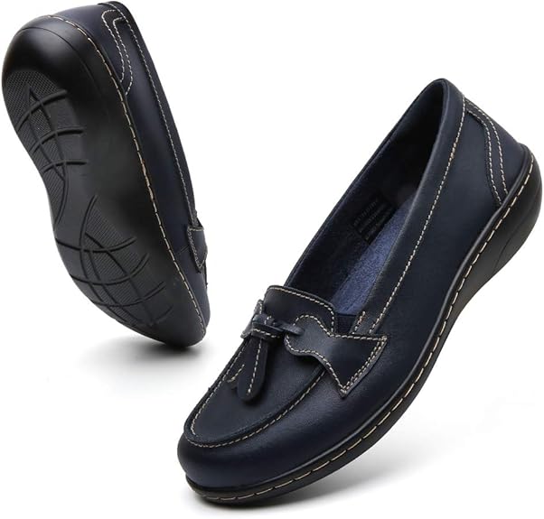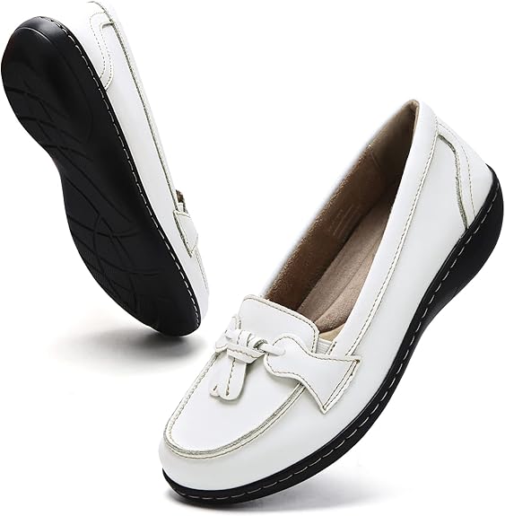 Materiales principales: los mocasines para mujeres cómodos están hechos de cuero dividido de lujo genuino con costuras finas clásicas. Finamiento de cuero de piel de vaca y plantilla de espuma de memoria. Sole de goma ligera y flexible