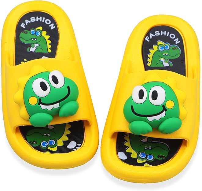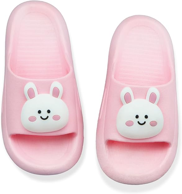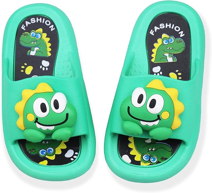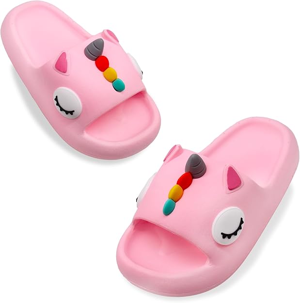 Diseño de dibujos animados: las sandalias de diapositivas de nuestros niños están diseñadas de manera única con diferentes colores y adorables diseños de patrones de animales, incluidos unicornios, conejos, dinosaurio. Estos diseños que llaman la atención ofrecen a niñas y niños una opción de diapositivas divertida y personalizada.