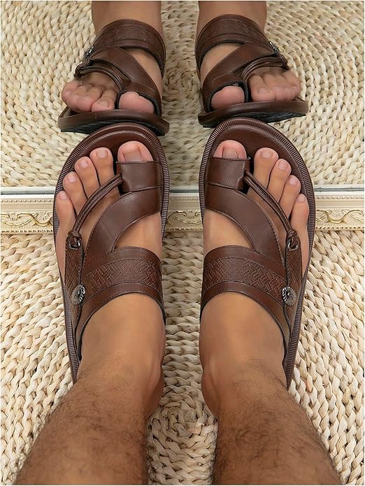 Sandalias de vacaciones, zapatos Slip on Zapatos, zapatillas de cuero, dedo abierto, color sólido, anillo de dedo del pie