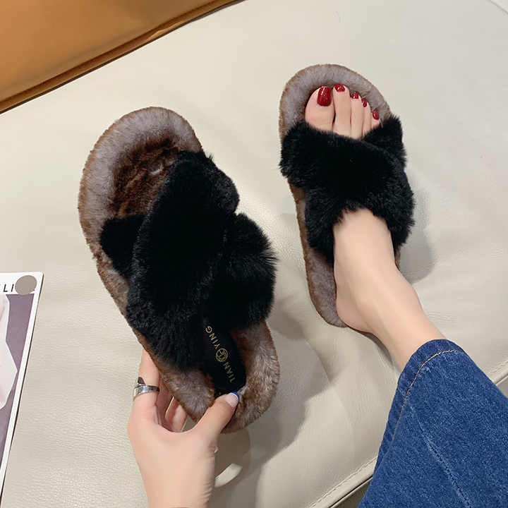 Suela gruesa Otoño Invierno moda mujer cruz piel sintética zapatillas exterior desgaste cálido interior señoras