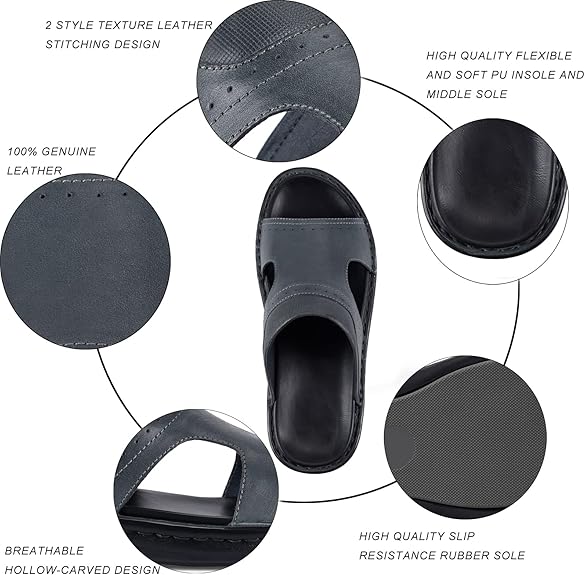 Diseño de costura hecha a mano: para mejorar la durabilidad de los portaobjetos de confort, las superiores y las plantas de los sandles se cosieron a través de costuras hechas a mano. Este diseño no solo es práctico, sino también atractivo.