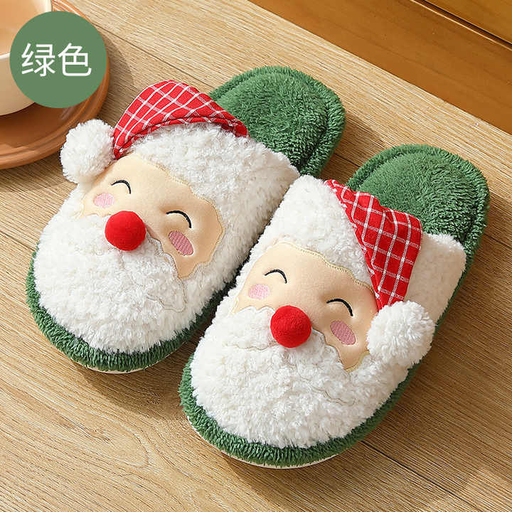 Zapatillas de casa cálidas de invierno para hombre y mujer, zapatos de interior para niños, dibujos animados de Papá Noel, deslizantes planos suaves para Navidad