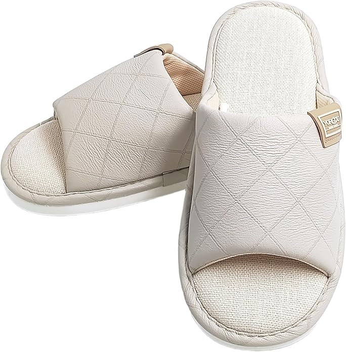 Luz - Diseño vintage y minimalista: adornado con una parte superior de cuero falso acolchado, estas zapatillas traen un toque de luz - encanto vintage. Su estilo minimalista coincide sin problemas con cualquier decoración del hogar, agregando un estilo elegante a su ropa de salón. Se recomienda comprar una talla más grande.