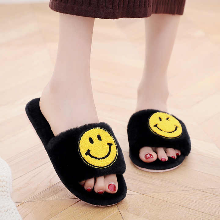 Zapatillas mullidas de invierno para mujer, nuevas zapatillas Kawaii con punta abierta, piel de casa de dibujos animados para dormitorio para mujer